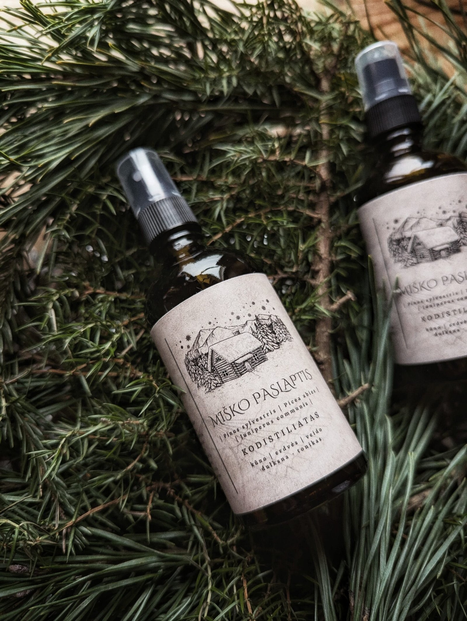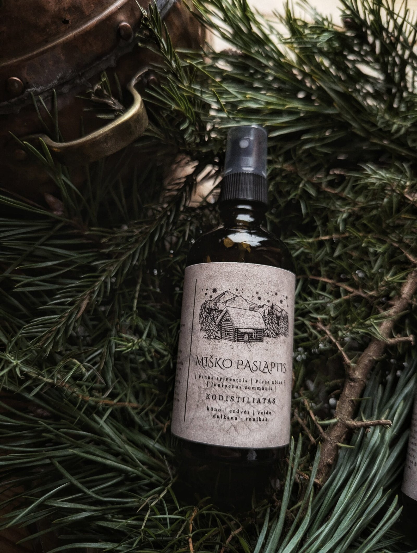 Miško paslaptis – tai išskirtinis miško energijos kodistiliatas, sukurtas vienu metu distiliuojant eglių, pušų ir kadagių šakas. Šis procesas sujungia visų trijų medžių savybes į vieną harmoningą miško kvapą – tvirtą, gaivų, dervišką ir raminantį.